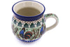 This Rooster Parade 12oz Bubble Mug was handmade and hand decorated in Boleslawiec, Poland by skilled artisans according to old traditional methods. This is a Polish pottery Signature Unikat, which means that it has been hand painted with both sponges and brushes and it is signed by the artist who painted it. Unikat pieces are the most intricate works of art. Larger Unikat items take hours of very careful work to finish. This Polish stoneware is microwave, dishwasher, freezer, and oven safe up to 480°F. It does not contain lead or cadmium. It is part of the Rooster Parade Collection.
