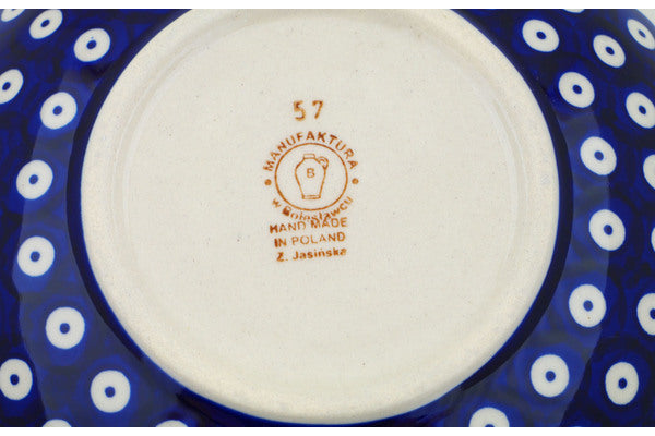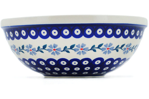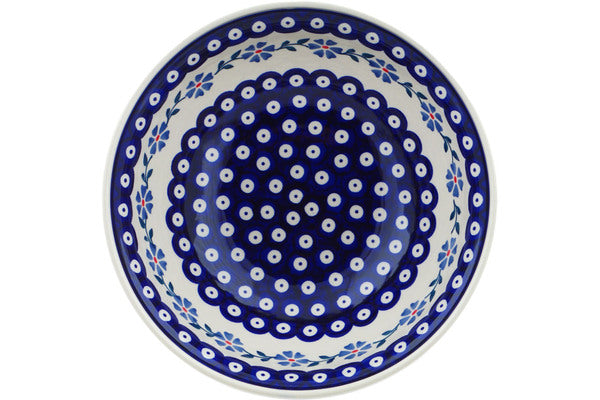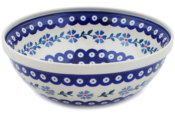 This Peacock Forget-Me-Not 10" Bowl was handmade and hand decorated in Boleslawiec, Poland by skilled artisans according to old traditional methods. This Polish stoneware is microwave, dishwasher, freezer, and oven safe up to 480°F. It does not contain lead or cadmium. It is part of the Peacock Forget-Me-Not Collection.