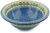 This Blue Daisy Peacock 9" Bowl was handmade and hand decorated in Boleslawiec, Poland by skilled artisans according to old traditional methods. This Polish stoneware is microwave, dishwasher, freezer, and oven safe up to 480°F. It does not contain lead or cadmium. It is part of the Blue Daisy Peacock Collection.