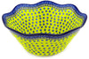 This Cabin Meadow 9" Bowl was handmade and hand decorated in Boleslawiec, Poland by skilled artisans according to old traditional methods. This is a Polish pottery Signature Unikat, which means that it has been hand painted with both sponges and brushes and it is signed by the artist who painted it. Unikat pieces are the most intricate works of art. Larger Unikat items take hours of very careful work to finish. This Polish stoneware is microwave, dishwasher, freezer, and oven safe up to 480°F. It does not contain lead or cadmium. It is part of the Cabin Meadow Collection.