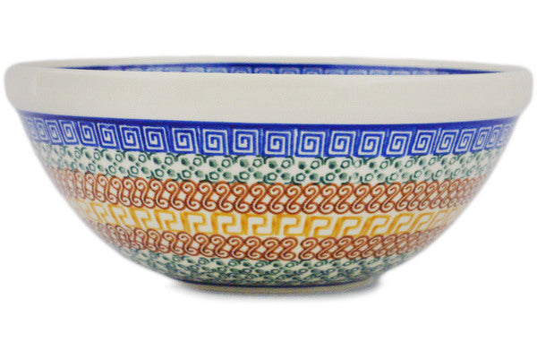 This Grecian Sea 9" Bowl was handmade and hand decorated in Boleslawiec, Poland by skilled artisans according to old traditional methods. This Polish stoneware is microwave, dishwasher, freezer, and oven safe up to 480°F. It does not contain lead or cadmium. It is part of the Grecian Sea Collection.