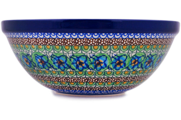 This Mardi Gras 9" Bowl was handmade and hand decorated in Boleslawiec, Poland by skilled artisans according to old traditional methods. This is a Polish pottery Signature Unikat, which means that it has been hand painted with both sponges and brushes and it is signed by the artist who painted it. Unikat pieces are the most intricate works of art. Larger Unikat items take hours of very careful work to finish. This Polish stoneware is microwave, dishwasher, freezer, and oven safe up to 480°F. It does not contain lead or cadmium. It is part of the Mardi Gras Collection.