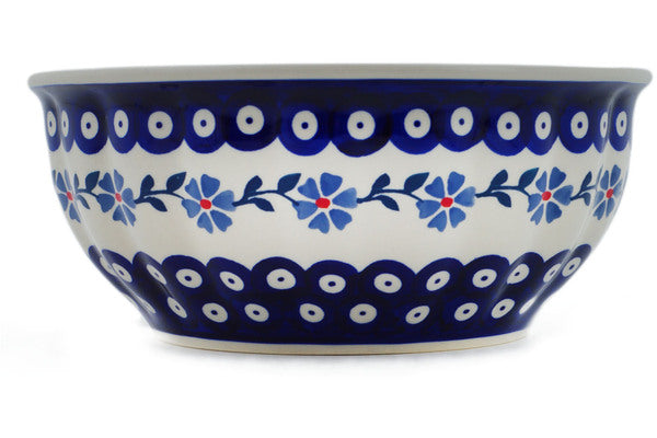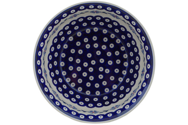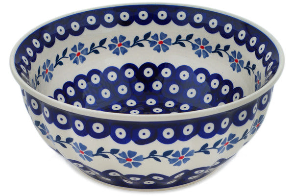 This Peacock Forget-Me-Not 9" Bowl was handmade and hand decorated in Boleslawiec, Poland by skilled artisans according to old traditional methods. This Polish stoneware is microwave, dishwasher, freezer, and oven safe up to 480°F. It does not contain lead or cadmium. It is part of the Peacock Forget-Me-Not Collection.