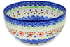 This Blue Pansy 9" Mixing bowl, serving bowl was handmade and hand decorated in Boleslawiec, Poland by skilled artisans according to old traditional methods. This Polish stoneware is microwave, dishwasher, freezer, and oven safe up to 480°F. It does not contain lead or cadmium. It is part of the Blue Pansy Collection.