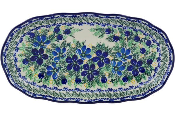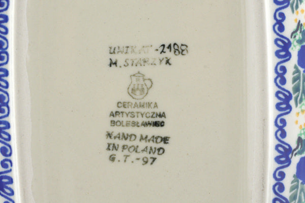 This Forget Me Not Meadow 12" Platter was handmade and hand decorated in Boleslawiec, Poland by skilled artisans according to old traditional methods. This is a Polish pottery Signature Unikat, which means that it has been hand painted with both sponges and brushes and it is signed by the artist who painted it. Unikat pieces are the most intricate works of art. Larger Unikat items take hours of very careful work to finish. This Polish stoneware is microwave, dishwasher, freezer, and oven safe up to 480°F. It does not contain lead or cadmium. It is part of the Forget Me Not Meadow Collection.