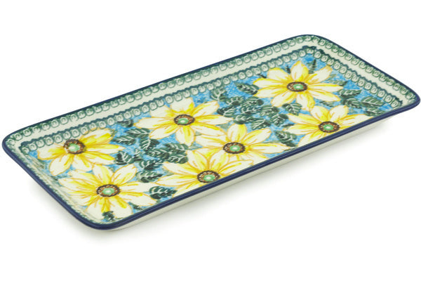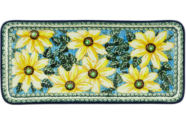 This Black Eyed Susan 13" Platter was handmade and hand decorated in Boleslawiec, Poland by skilled artisans according to old traditional methods. This is a Polish pottery Signature Unikat, which means that it has been hand painted with both sponges and brushes and it is signed by the artist who painted it. Unikat pieces are the most intricate works of art. Larger Unikat items take hours of very careful work to finish. This Polish stoneware is microwave, dishwasher, freezer, and oven safe up to 480°F. It does not contain lead or cadmium. It is part of the Black Eyed Susan Collection.