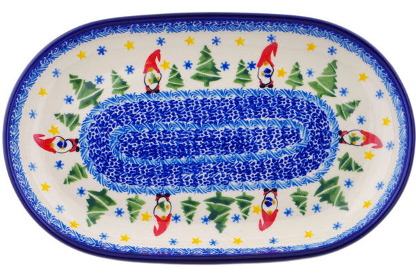 This Twinkle Twinkle Little Gnome 13" Platter was handmade and hand decorated in Boleslawiec, Poland by skilled artisans according to old traditional methods. This Polish stoneware is microwave, dishwasher, freezer, and oven safe up to 480°F. It does not contain lead or cadmium. It is part of the Twinkle Twinkle Little Gnome Collection.