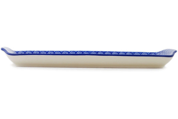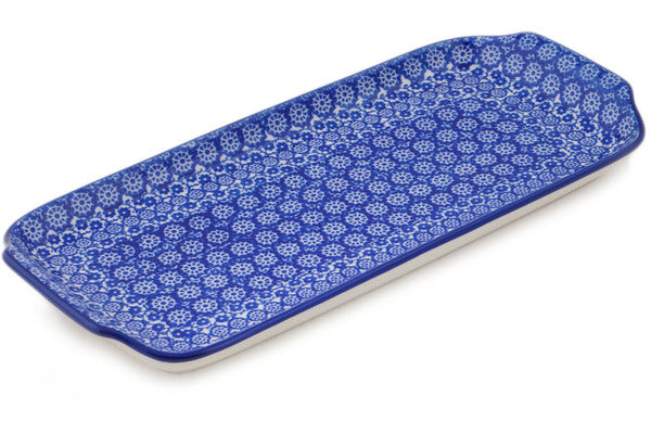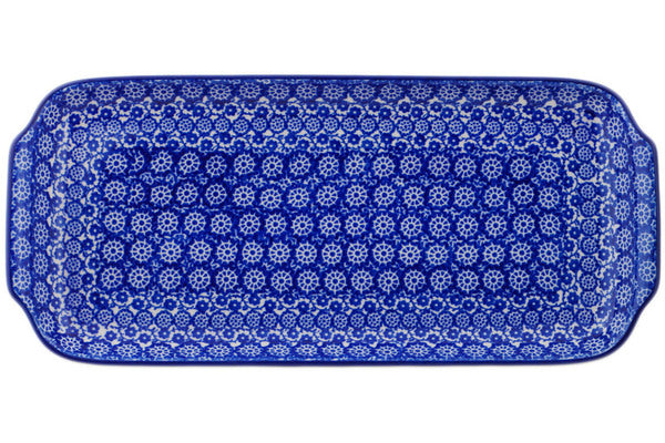 This Wagon Wheel 13" Platter with Handles was handmade and hand decorated in Boleslawiec, Poland by skilled artisans according to old traditional methods. This Polish stoneware is microwave, dishwasher, freezer, and oven safe up to 480°F. It does not contain lead or cadmium. It is part of the Wagon Wheel Collection.