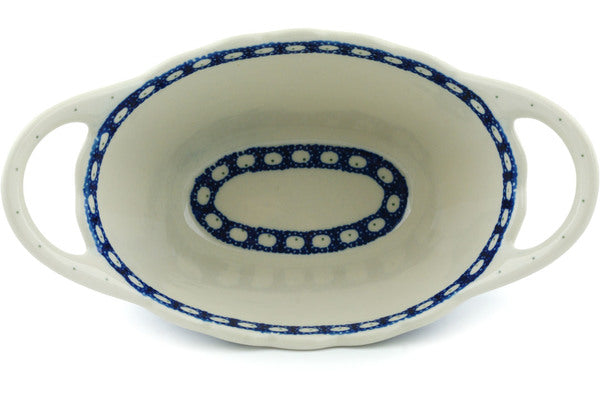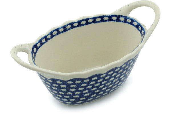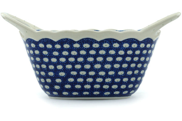This Stepping Stones 9" Basket was handmade and hand decorated in Boleslawiec, Poland by skilled artisans according to old traditional methods. This Polish stoneware is microwave, dishwasher, freezer, and oven safe up to 480°F. It does not contain lead or cadmium. It is part of the Stepping Stones Collection.