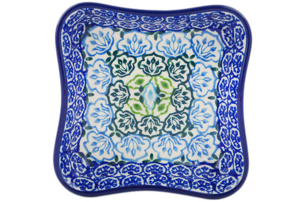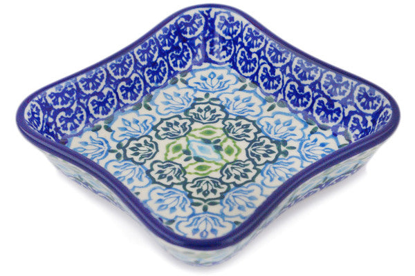 This Ocean Tulips 4" Bowl was handmade and hand decorated in Boleslawiec, Poland by skilled artisans according to old traditional methods. This Polish stoneware is microwave, dishwasher, freezer, and oven safe up to 480°F. It does not contain lead or cadmium. It is part of the Ocean Tulips Collection.