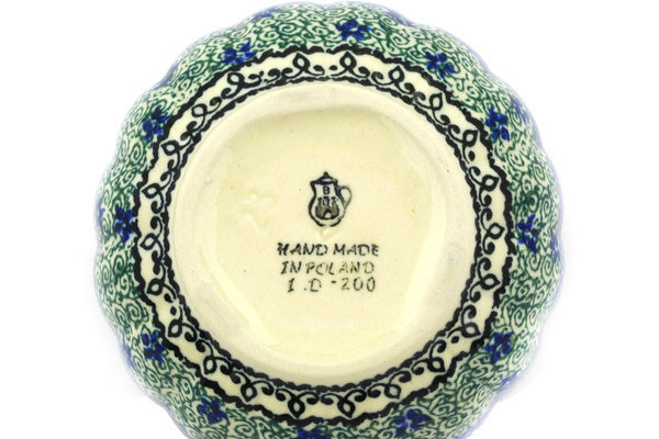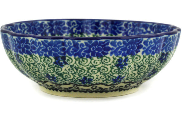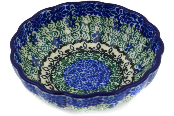 This Blue Ambrosia 5" Scalloped Fluted Bowl was handmade and hand decorated in Boleslawiec, Poland by skilled artisans according to old traditional methods. This Polish stoneware is microwave, dishwasher, freezer, and oven safe up to 480°F. It does not contain lead or cadmium. It is part of the Blue Ambrosia Collection.