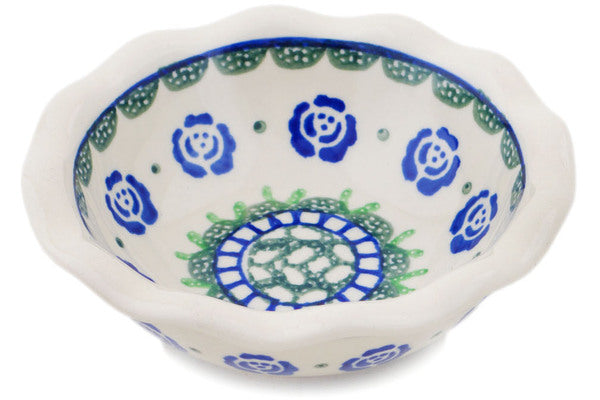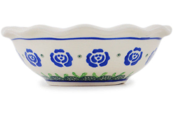 This Blue Rose Patch 5" Bowl was handmade and hand decorated in Boleslawiec, Poland by skilled artisans according to old traditional methods. This Polish stoneware is microwave, dishwasher, freezer, and oven safe up to 480°F. It does not contain lead or cadmium. It is part of the Blue Rose Patch Collection.