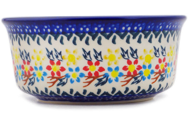 This Spring Flower Ring 5" Bowl was handmade and hand decorated in Boleslawiec, Poland by skilled artisans according to old traditional methods. This Polish stoneware is microwave, dishwasher, freezer, and oven safe up to 480°F. It does not contain lead or cadmium. It is part of the Spring Flower Ring Collection.