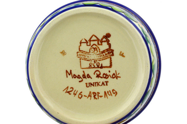 This Spring Splendor 5" Bowl was handmade and hand decorated in Boleslawiec, Poland by skilled artisans according to old traditional methods. This is a Polish pottery Signature Unikat, which means that it has been hand painted with both sponges and brushes and it is signed by the artist who painted it. Unikat pieces are the most intricate works of art. Larger Unikat items take hours of very careful work to finish. This Polish stoneware is microwave, dishwasher, freezer, and oven safe up to 480°F. It does not contain lead or cadmium. It is part of the Spring Splendor Collection.