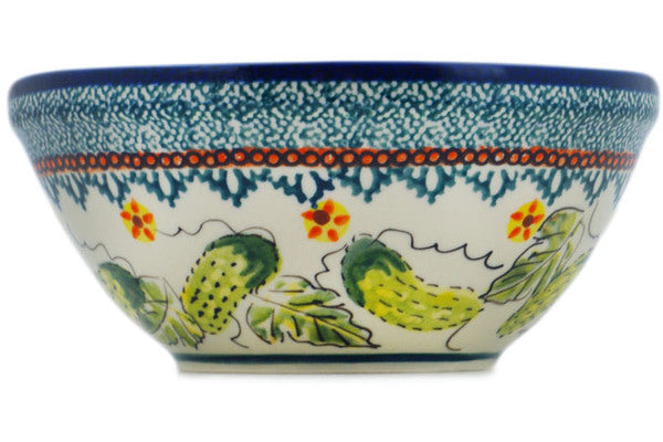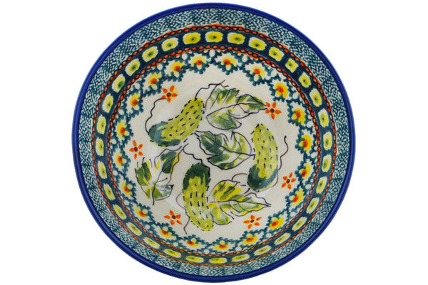 This Cucumber Patch 6" Bowl was handmade and hand decorated in Boleslawiec, Poland by skilled artisans according to old traditional methods. This Polish stoneware is microwave, dishwasher, freezer, and oven safe up to 480°F. It does not contain lead or cadmium. It is part of the Cucumber Patch Collection.