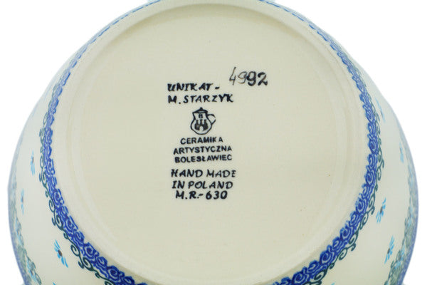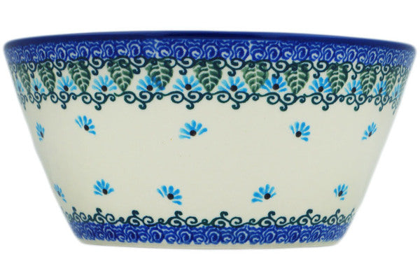 This Forget Me Not 7" Bowl was handmade and hand decorated in Boleslawiec, Poland by skilled artisans according to old traditional methods. This is a Polish pottery Signature Unikat, which means that it has been hand painted with both sponges and brushes and it is signed by the artist who painted it. Unikat pieces are the most intricate works of art. Larger Unikat items take hours of very careful work to finish. This Polish stoneware is microwave, dishwasher, freezer, and oven safe up to 480°F. It does not contain lead or cadmium. It is part of the Forget Me Not Collection.