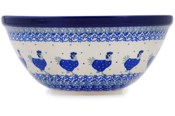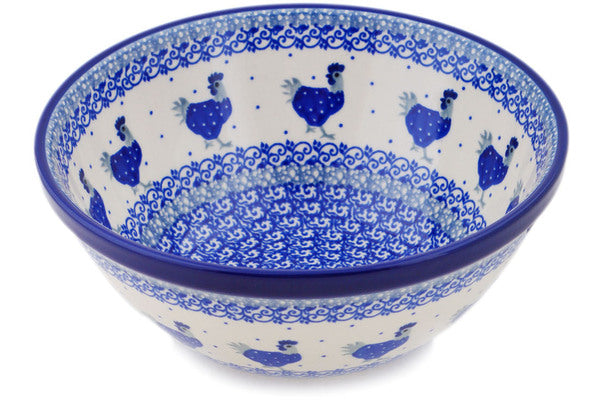 This Cobalt Hen 8" Bowl was handmade and hand decorated in Boleslawiec, Poland by skilled artisans according to old traditional methods. This Polish stoneware is microwave, dishwasher, freezer, and oven safe up to 480°F. It does not contain lead or cadmium. It is part of the Cobalt Hen Collection.