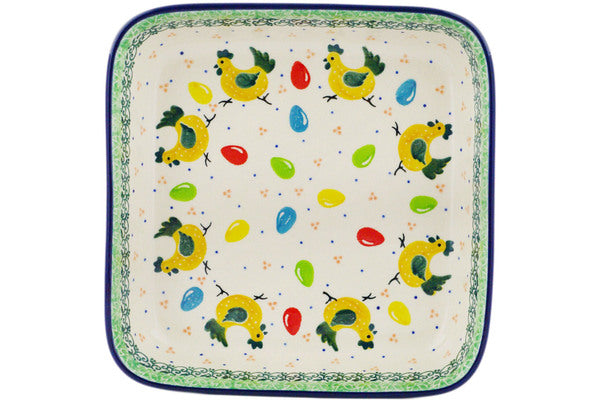 This Egg Hunt 8" Bowl was handmade and hand decorated in Boleslawiec, Poland by skilled artisans according to old traditional methods. This Polish stoneware is microwave, dishwasher, freezer, and oven safe up to 480°F. It does not contain lead or cadmium. It is part of the Egg Hunt Collection.