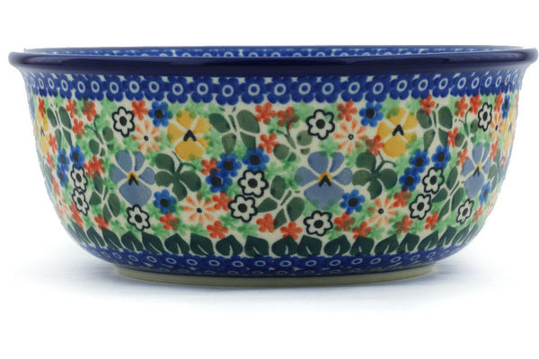 This Spring Garden 8" Bowl was handmade and hand decorated in Boleslawiec, Poland by skilled artisans according to old traditional methods. This is a Polish pottery Signature Unikat, which means that it has been hand painted with both sponges and brushes and it is signed by the artist who painted it. Unikat pieces are the most intricate works of art. Larger Unikat items take hours of very careful work to finish. This Polish stoneware is microwave, dishwasher, freezer, and oven safe up to 480°F. It does not contain lead or cadmium. It is part of the Spring Garden Collection.