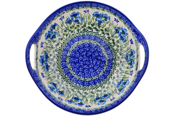 This Fresh Flora 10" Bowl with Handles was handmade and hand decorated in Boleslawiec, Poland by skilled artisans according to old traditional methods. This Polish stoneware is microwave, dishwasher, freezer, and oven safe up to 480°F. It does not contain lead or cadmium. It is part of the Fresh Flora Collection.