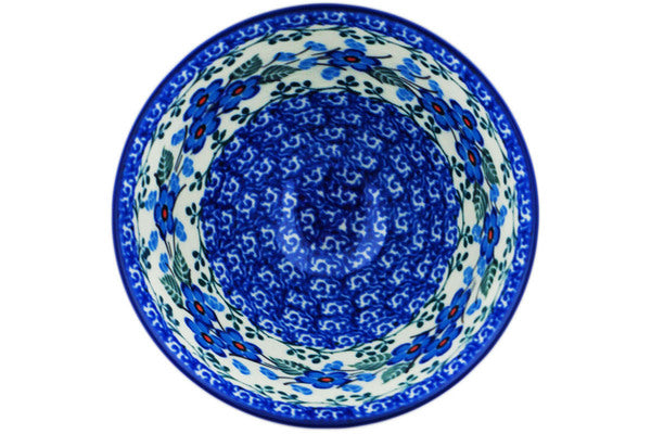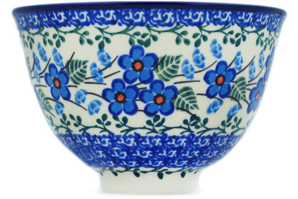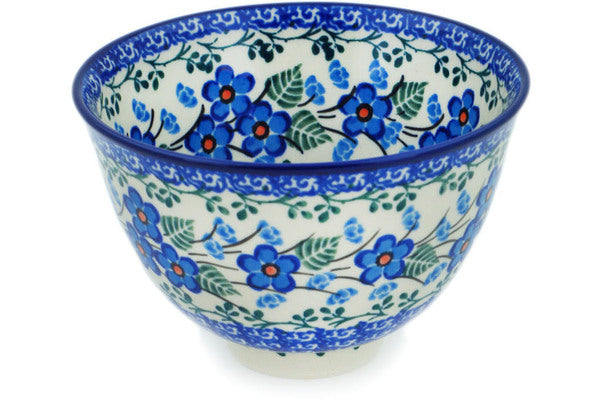 This Blue Blossom 5" Bowl with Pedestal was handmade and hand decorated in Boleslawiec, Poland by skilled artisans according to old traditional methods. This Polish stoneware is microwave, dishwasher, freezer, and oven safe up to 480°F. It does not contain lead or cadmium. It is part of the Blue Blossom Collection.