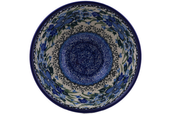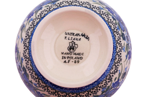 This Rhapsody In Blue 5" Bowl with Pedestal was handmade and hand decorated in Boleslawiec, Poland by skilled artisans according to old traditional methods. This is a Polish pottery Signature Unikat, which means that it has been hand painted with both sponges and brushes and it is signed by the artist who painted it. Unikat pieces are the most intricate works of art. Larger Unikat items take hours of very careful work to finish. This Polish stoneware is microwave, dishwasher, freezer, and oven safe up to 480°F. It does not contain lead or cadmium. It is part of the Rhapsody In Blue Collection.