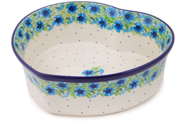 This Springing Into Spring 10" Heart Shaped Bowl was handmade and hand decorated in Boleslawiec, Poland by skilled artisans according to old traditional methods. This is a Polish pottery Signature Unikat, which means that it has been hand painted with both sponges and brushes and it is signed by the artist who painted it. Unikat pieces are the most intricate works of art. Larger Unikat items take hours of very careful work to finish. This Polish stoneware is microwave, dishwasher, freezer, and oven safe up to 480°F. It does not contain lead or cadmium. It is part of the Springing Into Spring Collection.