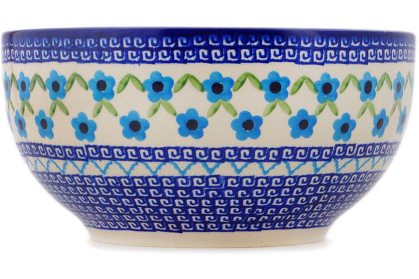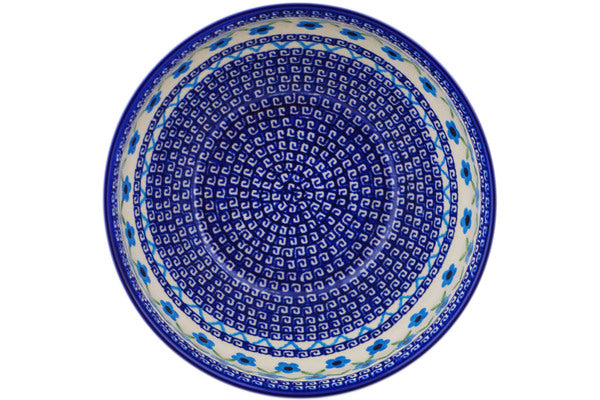 This Greek Daisies 9" Mixing bowl, serving bowl was handmade and hand decorated in Boleslawiec, Poland by skilled artisans according to old traditional methods. This Polish stoneware is microwave, dishwasher, freezer, and oven safe up to 480°F. It does not contain lead or cadmium. It is part of the Greek Daisies Collection.