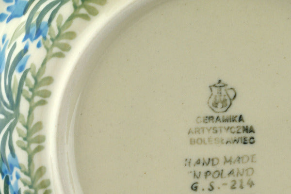 This Feathery Bluebells 9" Pasta Bowl was handmade and hand decorated in Boleslawiec, Poland by skilled artisans according to old traditional methods. This Polish stoneware is microwave, dishwasher, freezer, and oven safe up to 480°F. It does not contain lead or cadmium. It is part of the Feathery Bluebells Collection.