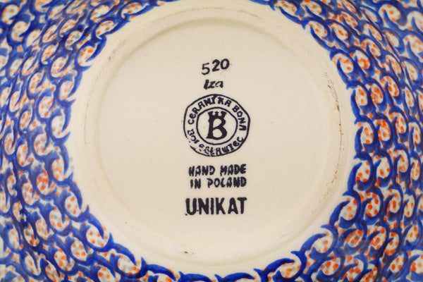 This Poppy Passion 9" Pasta Bowl was handmade and hand decorated in Boleslawiec, Poland by skilled artisans according to old traditional methods. This is a Polish pottery Signature Unikat, which means that it has been hand painted with both sponges and brushes and it is signed by the artist who painted it. Unikat pieces are the most intricate works of art. Larger Unikat items take hours of very careful work to finish. This Polish stoneware is microwave, dishwasher, freezer, and oven safe up to 480°F. It does not contain lead or cadmium. It is part of the Poppy Passion Collection.
