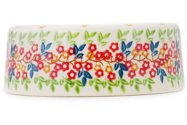 This Tropical Bloomscape 7" Pet Bowl was handmade and hand decorated in Boleslawiec, Poland by skilled artisans according to old traditional methods. This Polish stoneware is microwave, dishwasher, freezer, and oven safe up to 480°F. It does not contain lead or cadmium. It is part of the Tropical Bloomscape Collection.