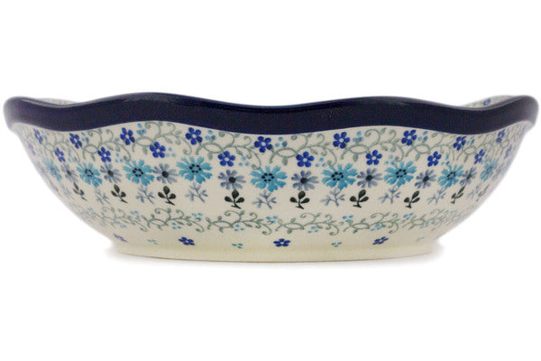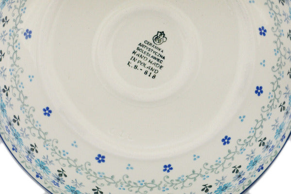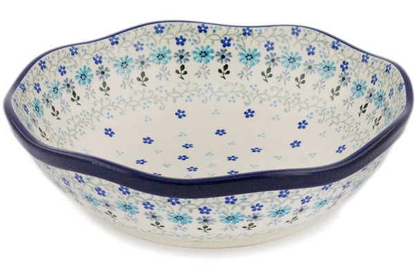 This Baby Blue Garden 10" Scalloped Bowl was handmade and hand decorated in Boleslawiec, Poland by skilled artisans according to old traditional methods. This Polish stoneware is microwave, dishwasher, freezer, and oven safe up to 480°F. It does not contain lead or cadmium. It is part of the Baby Blue Garden Collection.