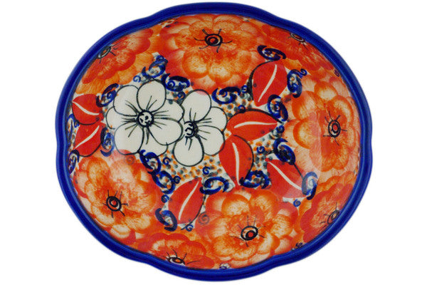 This Poppy Passion 7" Scalloped Bowl was handmade and hand decorated in Boleslawiec, Poland by skilled artisans according to old traditional methods. This is a Polish pottery Signature Unikat, which means that it has been hand painted with both sponges and brushes and it is signed by the artist who painted it. Unikat pieces are the most intricate works of art. Larger Unikat items take hours of very careful work to finish. This Polish stoneware is microwave, dishwasher, freezer, and oven safe up to 480°F. It does not contain lead or cadmium. It is part of the Poppy Passion Collection.