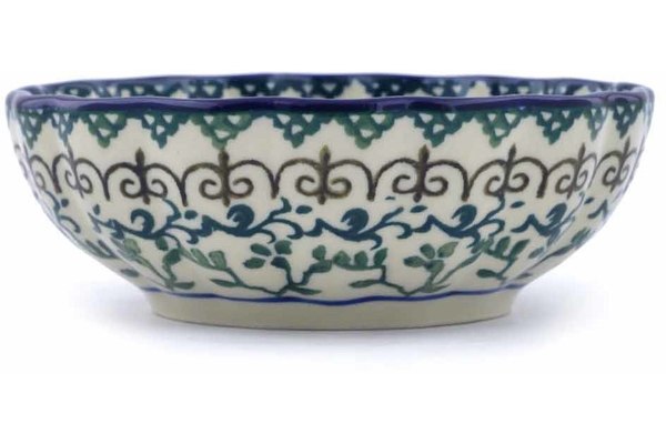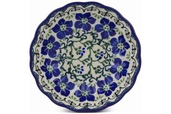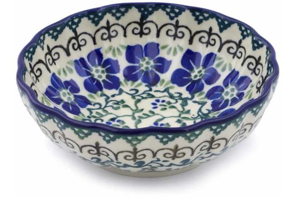 This Blue Dogwood 5" Scalloped Fluted Bowl was handmade and hand decorated in Boleslawiec, Poland by skilled artisans according to old traditional methods. This Polish stoneware is microwave, dishwasher, freezer, and oven safe up to 480°F. It does not contain lead or cadmium. It is part of the Blue Dogwood Collection.