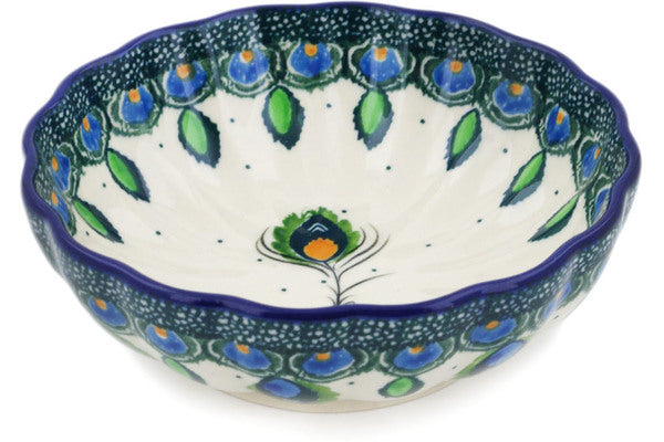 Home Bowls & Baskets Scalloped Fluted Bowl 5" Peacock Feather Theme