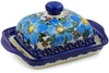 This Starburst Garland 7" Butter Dish was handmade and hand decorated in Boleslawiec, Poland by skilled artisans according to old traditional methods. This is a Polish pottery Signature Unikat, which means that it has been hand painted with both sponges and brushes and it is signed by the artist who painted it. Unikat pieces are the most intricate works of art. Larger Unikat items take hours of very careful work to finish. This Polish stoneware is microwave, dishwasher, freezer, and oven safe up to 480°F. It does not contain lead or cadmium. It is part of the Starburst Garland Collection.