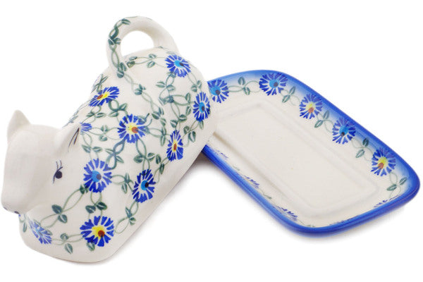 This Blue Thistle Beauty 8" Butter Dish was handmade and hand decorated in Boleslawiec, Poland by skilled artisans according to old traditional methods. This Polish stoneware is microwave, dishwasher, freezer, and oven safe up to 480°F. It does not contain lead or cadmium. It is part of the Blue Thistle Beauty Collection.