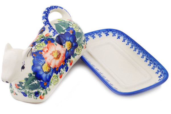 This Poppy Trio 8" Butter Dish was handmade and hand decorated in Boleslawiec, Poland by skilled artisans according to old traditional methods. This is a Polish pottery Signature Unikat, which means that it has been hand painted with both sponges and brushes and it is signed by the artist who painted it. Unikat pieces are the most intricate works of art. Larger Unikat items take hours of very careful work to finish. This Polish stoneware is microwave, dishwasher, freezer, and oven safe up to 480°F. It does not contain lead or cadmium. It is part of the Poppy Trio Collection.