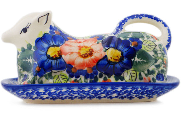 Butter Dish 7" Blue Tulip Garden Theme UNIKAT