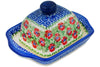 This Red Daisy Delight 8" Butter Dish was handmade and hand decorated in Boleslawiec, Poland by skilled artisans according to old traditional methods. This is a Polish pottery Signature Unikat, which means that it has been hand painted with both sponges and brushes and it is signed by the artist who painted it. Unikat pieces are the most intricate works of art. Larger Unikat items take hours of very careful work to finish. This Polish stoneware is microwave, dishwasher, freezer, and oven safe up to 480°F. It does not contain lead or cadmium. It is part of the Red Daisy Delight Collection.