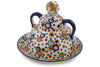 This Bright Beauty 8" Cheese Dish was handmade and hand decorated in Boleslawiec, Poland by skilled artisans according to old traditional methods. This is a Polish pottery Signature Unikat, which means that it has been hand painted with both sponges and brushes and it is signed by the artist who painted it. Unikat pieces are the most intricate works of art. Larger Unikat items take hours of very careful work to finish. This Polish stoneware is microwave, dishwasher, freezer, and oven safe up to 480°F. It does not contain lead or cadmium. It is part of the Bright Beauty Collection.