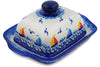 This Green Bird Meadow 8" Cheese Lady was handmade and hand decorated in Boleslawiec, Poland by skilled artisans according to old traditional methods. This is a Polish pottery Signature Unikat, which means that it has been hand painted with both sponges and brushes and it is signed by the artist who painted it. Unikat pieces are the most intricate works of art. Larger Unikat items take hours of very careful work to finish. This Polish stoneware is microwave, dishwasher, freezer, and oven safe up to 480°F. It does not contain lead or cadmium. It is part of the Green Bird Meadow Collection.
