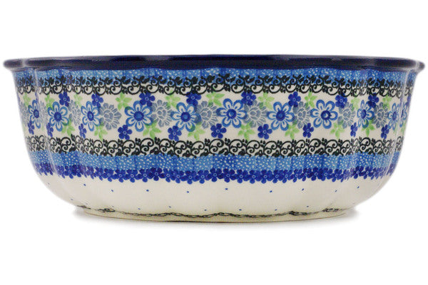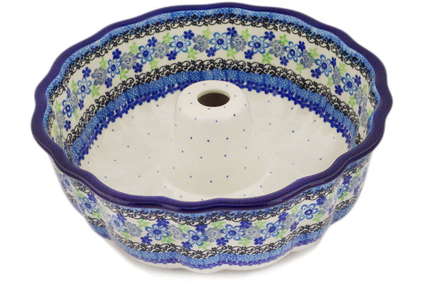 This Blue And Green Flower Dream 10" Cake Mould was handmade and hand decorated in Boleslawiec, Poland by skilled artisans according to old traditional methods. This Polish stoneware is microwave, dishwasher, freezer, and oven safe up to 480°F. It does not contain lead or cadmium. It is part of the Blue And Green Flower Dream Collection.