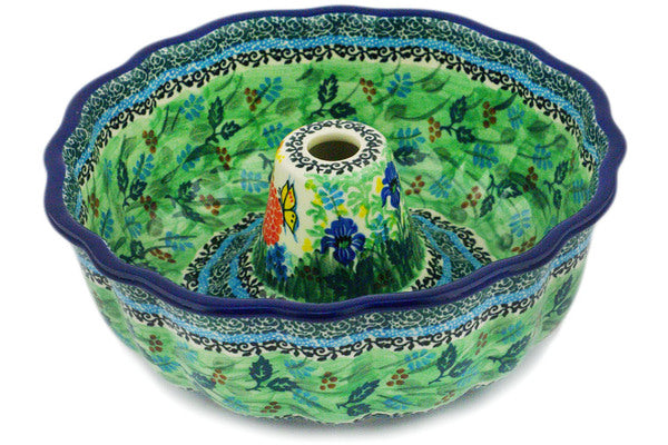 This Spring Garden 10" Cake Mould was handmade and hand decorated in Boleslawiec, Poland by skilled artisans according to old traditional methods. This is a Polish pottery Signature Unikat, which means that it has been hand painted with both sponges and brushes and it is signed by the artist who painted it. Unikat pieces are the most intricate works of art. Larger Unikat items take hours of very careful work to finish. This Polish stoneware is microwave, dishwasher, freezer, and oven safe up to 480°F. It does not contain lead or cadmium. It is part of the Spring Garden Collection.