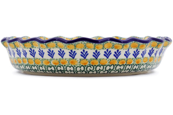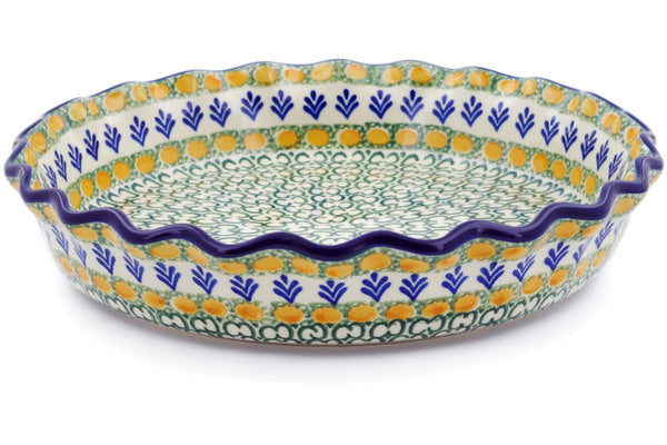 This Autumn Weatfields 10" Fluted Pie Dish was handmade and hand decorated in Boleslawiec, Poland by skilled artisans according to old traditional methods. This Polish stoneware is microwave, dishwasher, freezer, and oven safe up to 480°F. It does not contain lead or cadmium. It is part of the Autumn Weatfields Collection.