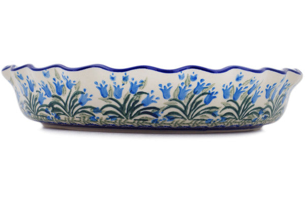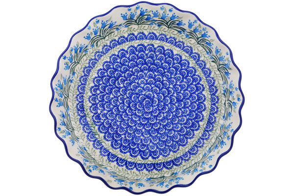 This Feathery Bluebells 10" Fluted Pie Dish was handmade and hand decorated in Boleslawiec, Poland by skilled artisans according to old traditional methods. This Polish stoneware is microwave, dishwasher, freezer, and oven safe up to 480°F. It does not contain lead or cadmium. It is part of the Feathery Bluebells Collection.