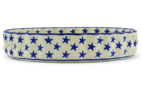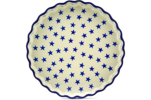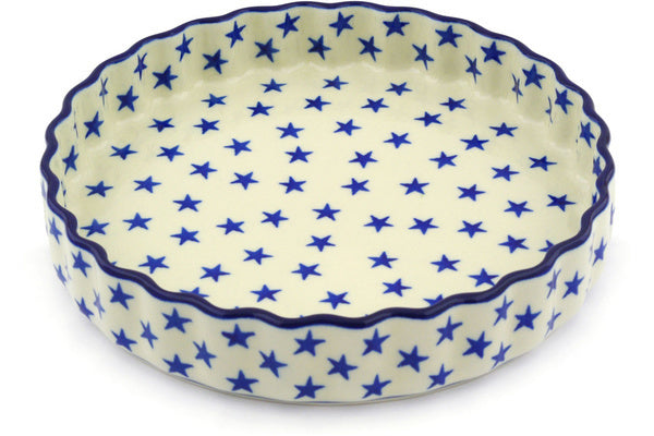 This Starburst Americana 9" Fluted Pie Dish was handmade and hand decorated in Boleslawiec, Poland by skilled artisans according to old traditional methods. This Polish stoneware is microwave, dishwasher, freezer, and oven safe up to 480°F. It does not contain lead or cadmium. It is part of the Starburst Americana Collection.