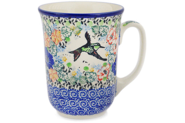 This Beautiful Canopy 17 oz Bistro Mug was handmade and hand decorated in Boleslawiec, Poland by skilled artisans according to old traditional methods. This is a Polish pottery Signature Unikat, which means that it has been hand painted with both sponges and brushes and it is signed by the artist who painted it. Unikat pieces are the most intricate works of art. Larger Unikat items take hours of very careful work to finish. This Polish stoneware is microwave, dishwasher, freezer, and oven safe up to 480°F. It does not contain lead or cadmium. It is part of the Beautiful Canopy Collection.
