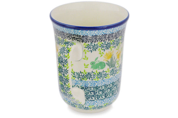 This Bountiful Bunnies 17 oz Bistro Mug was handmade and hand decorated in Boleslawiec, Poland by skilled artisans according to old traditional methods. This is a Polish pottery Signature Unikat, which means that it has been hand painted with both sponges and brushes and it is signed by the artist who painted it. Unikat pieces are the most intricate works of art. Larger Unikat items take hours of very careful work to finish. This Polish stoneware is microwave, dishwasher, freezer, and oven safe up to 480°F. It does not contain lead or cadmium. It is part of the Bountiful Bunnies Collection.