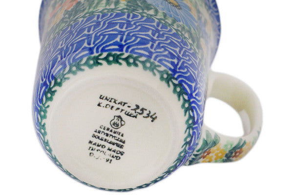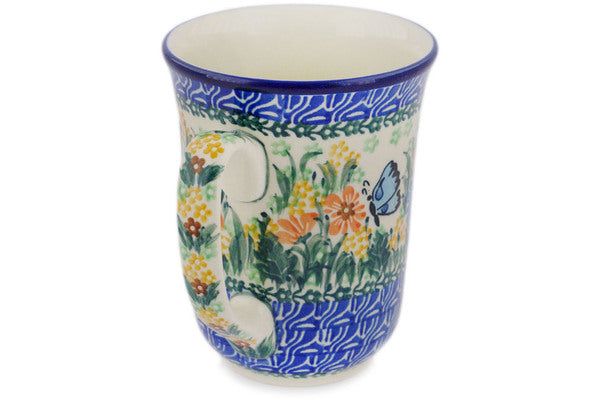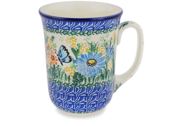 This Butterfly Love 17 oz Bistro Mug was handmade and hand decorated in Boleslawiec, Poland by skilled artisans according to old traditional methods. This is a Polish pottery Signature Unikat, which means that it has been hand painted with both sponges and brushes and it is signed by the artist who painted it. Unikat pieces are the most intricate works of art. Larger Unikat items take hours of very careful work to finish. This Polish stoneware is microwave, dishwasher, freezer, and oven safe up to 480°F. It does not contain lead or cadmium. It is part of the Butterfly Love Collection.
